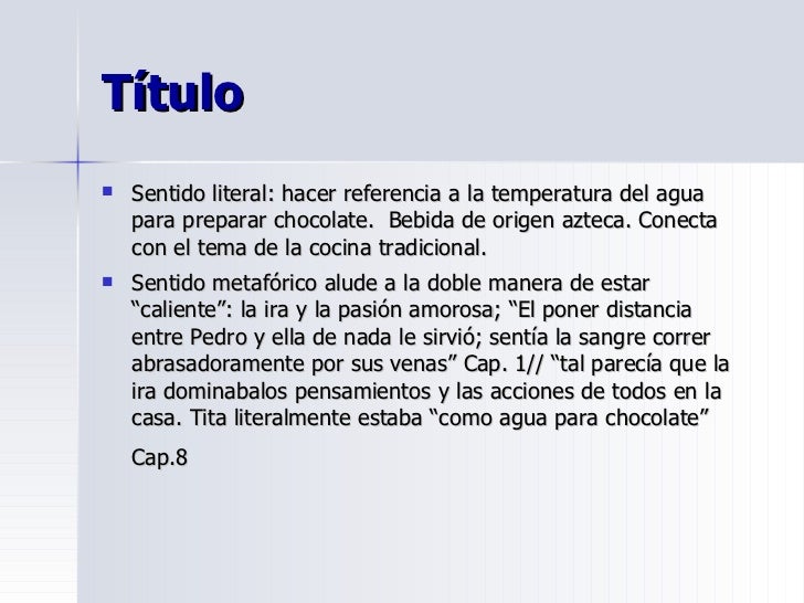 Por tanto desde ese dia tita se mudo a la cocina y entre atoles y tes crecio de lo mas sana. A traves de esta alegoria que enlaza con maestria sentimientos y elementos culinarios laura esquivel gano la literatura parnaso veinticinco anos la construccion de una historia que se basa en la tradicion del realismo magico se vuelve a crear en la cultura mexicana y trasciende todos por. Es de explicarse entonces el que se le haya desarrollado un sexto sentido en todo lo que a comida se refiere. Libro como agua para chocolate pdf.